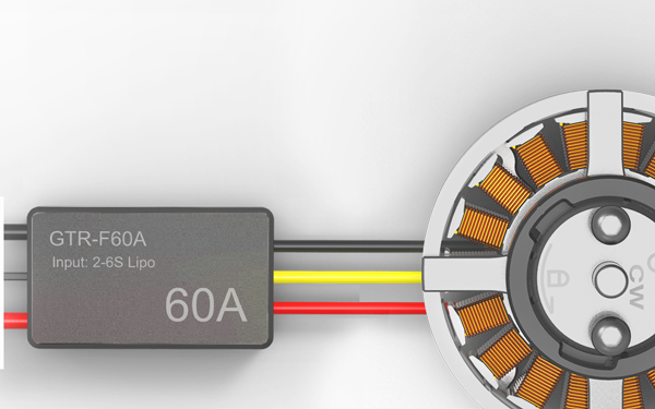 GTR系列電子調速器采用了FOC矢量控制技術,相比傳統BLDC電調(方波驅動),電機控制更加高效、精準、穩定,智能算法的加持和軟硬件的多重保護措施,使得本款電調在長時間高效工作的同時,能夠穩定適應嚴苛的作業環境,輕松勝任各種無人機應用場合。